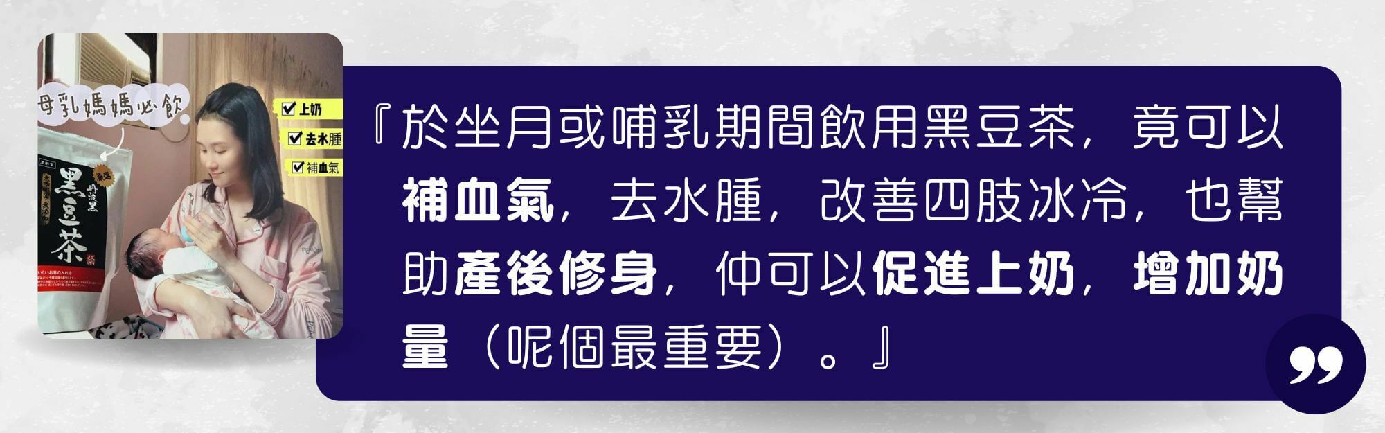 黑豆茶是上奶食物首選,適合坐月中及母乳餵哺的媽媽飲用。同時亦有安神補氣血功效,調理荷爾蒙失調、經期不順及更年期保養。