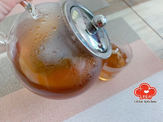 茶包加入約1公升熱⽔,浸泡5-10分鐘,即可飲⽤