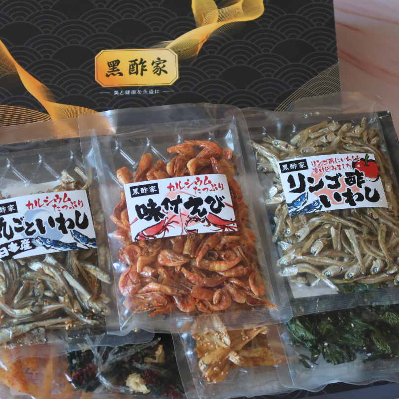 禮盒包括沙丁魚乾、蘋果醋沙丁、脆蝦、芝麻海帶、乾魚條、薄脆沙丁、烘焙沙丁、海藻沙拉,可按喜好自由配搭八款同價海產小食。