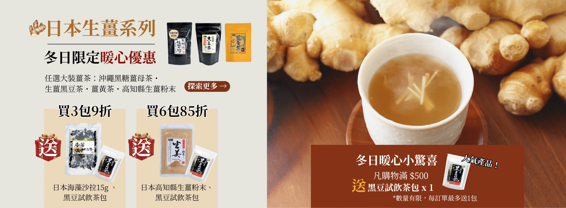 消費滿$800,即送 靈芝茶(細)消費滿$1200,即送 靈芝茶(細)及 丹波紅豆茶 (大)