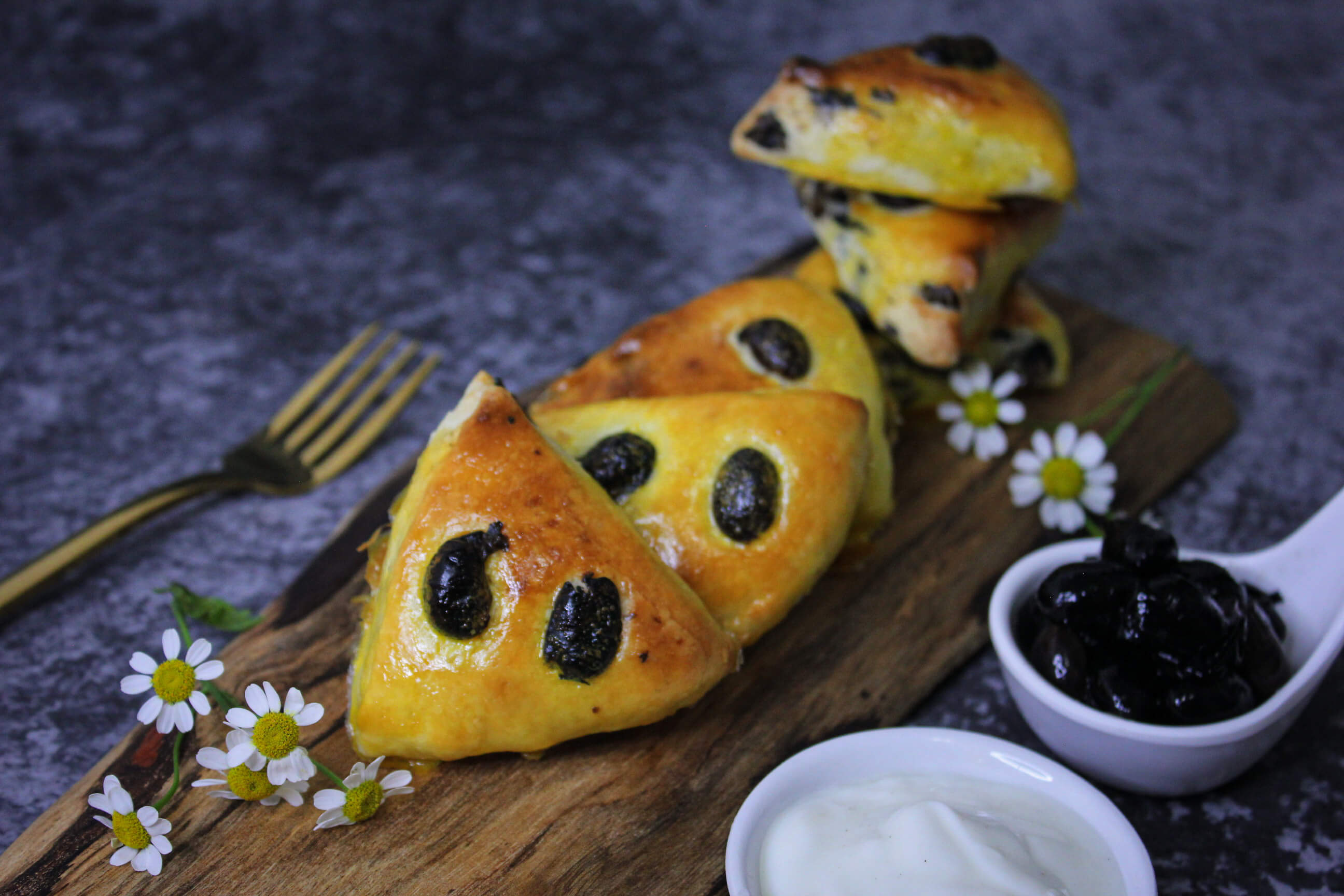 4. 把麵包放到焗盤上,撒上香草黑豆,放入焗爐(160度)焗 30-35分鐘至金黃。
