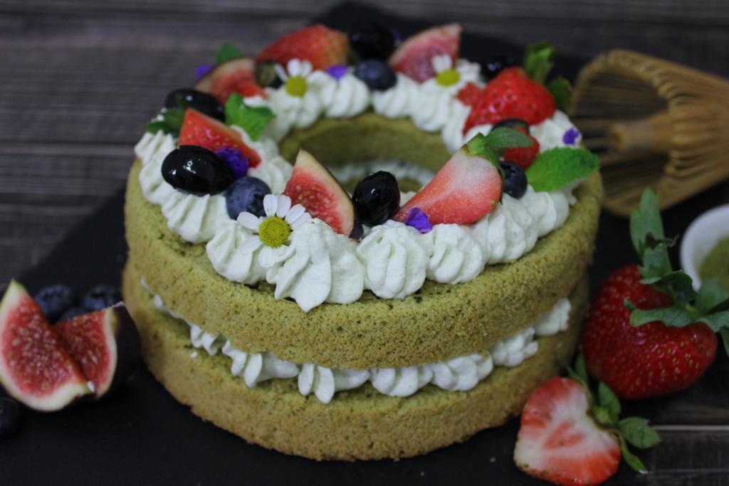 抺茶蜜漬黑豆海綿蛋糕