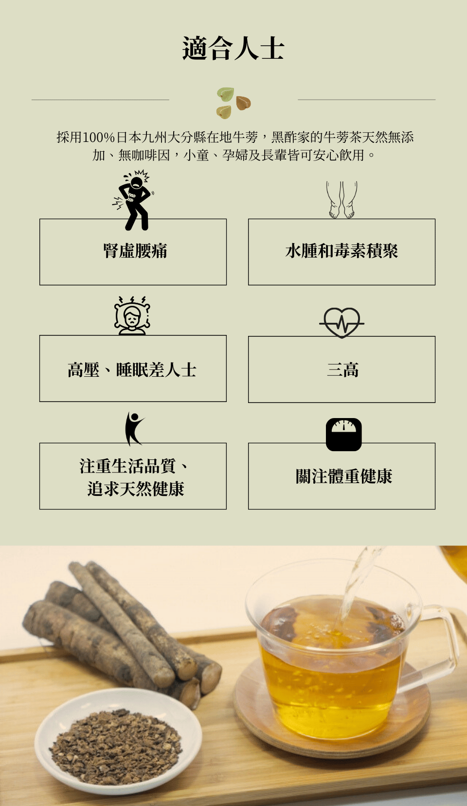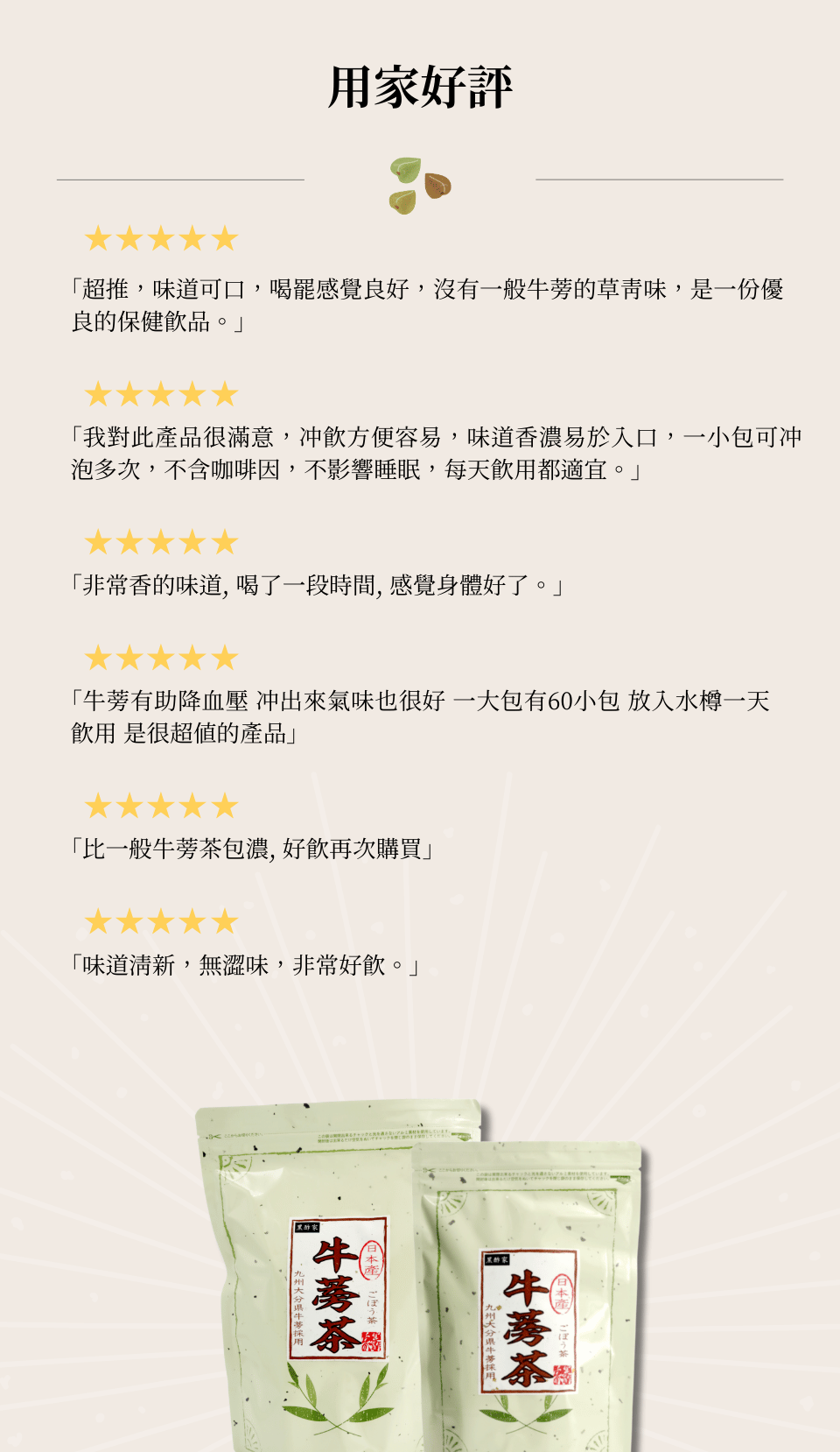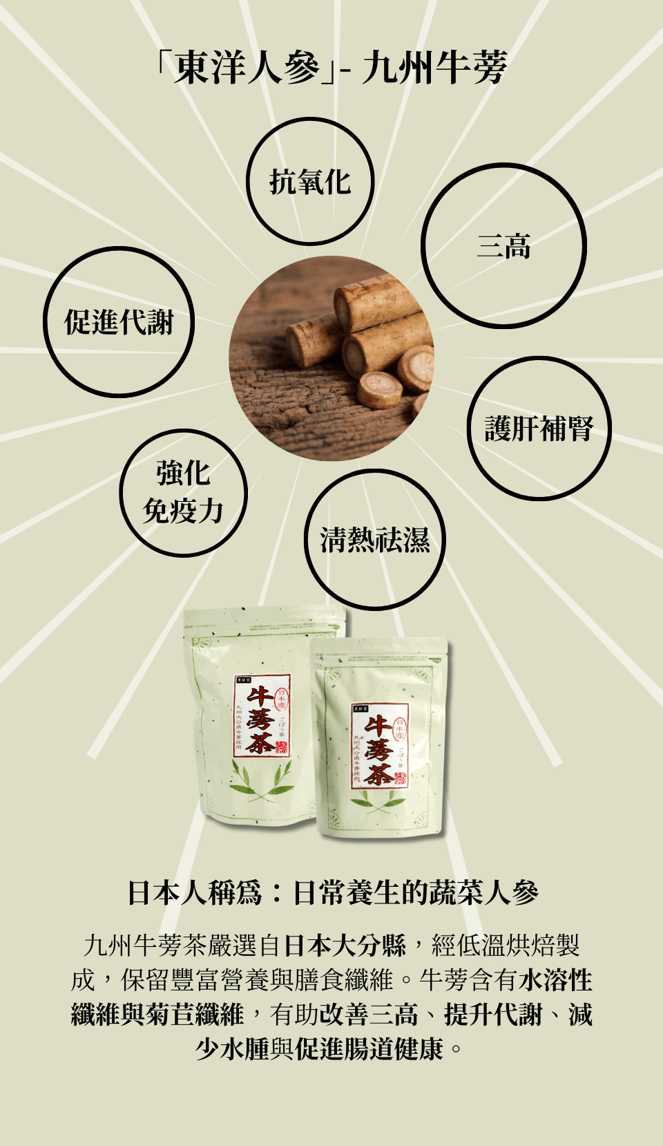 - 100%採用優質日本九州大分縣牛蒡烘焙製成