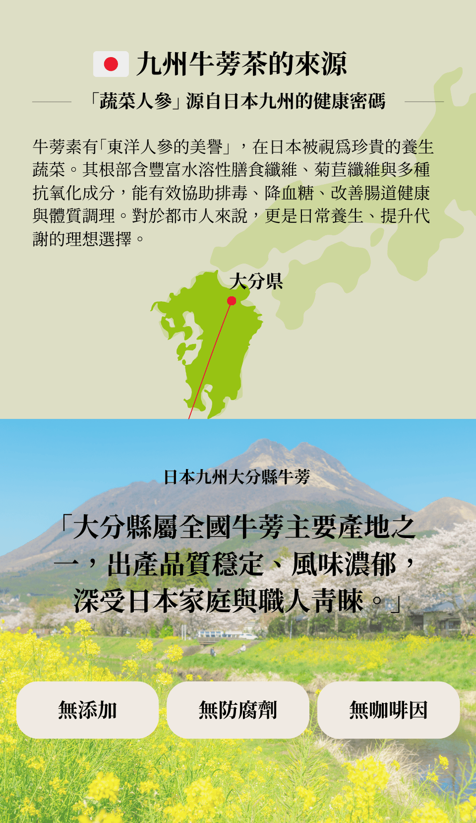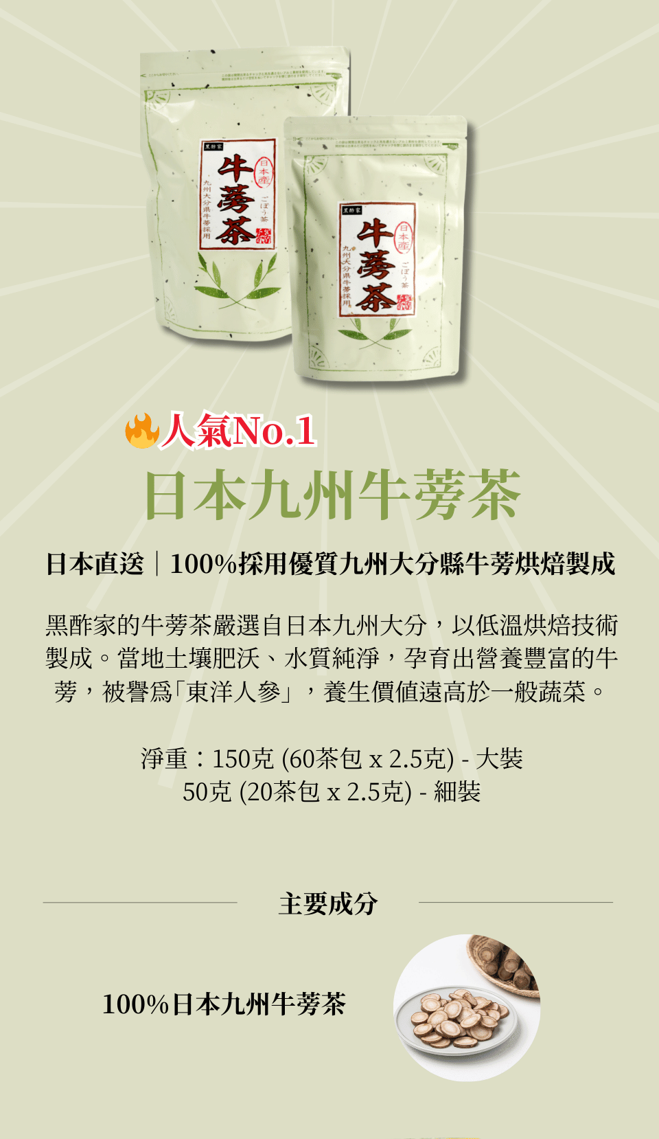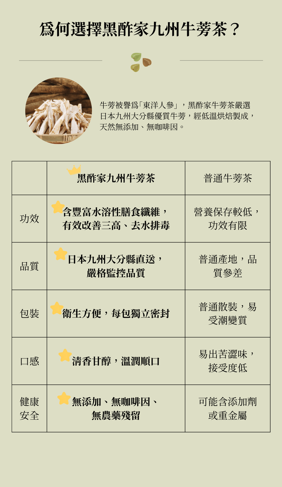 - 100%採用優質日本九州大分縣牛蒡烘焙製成
