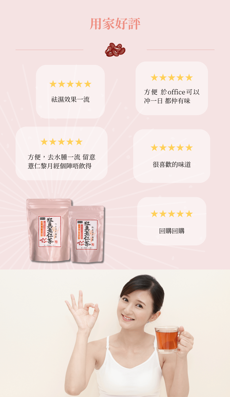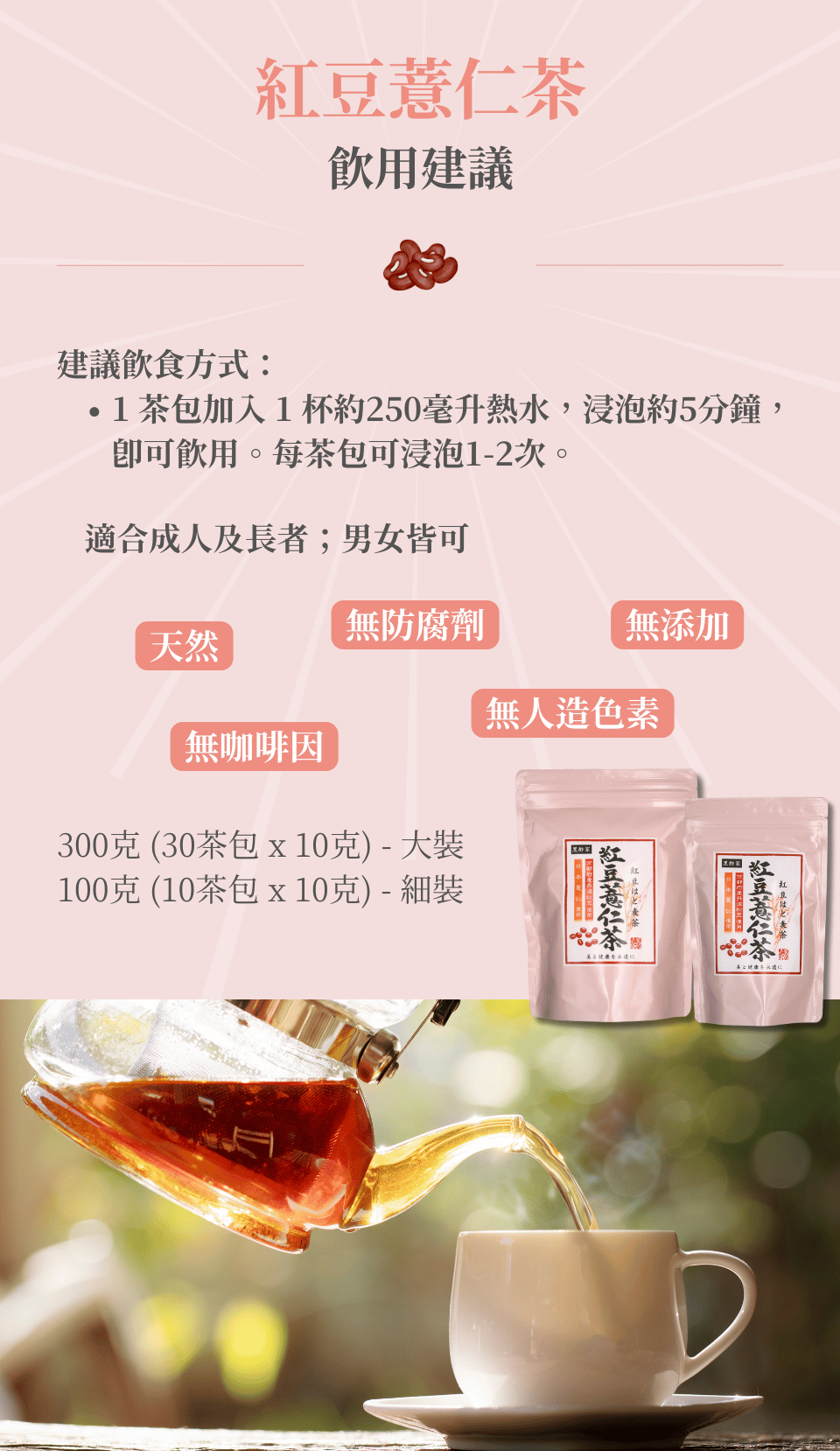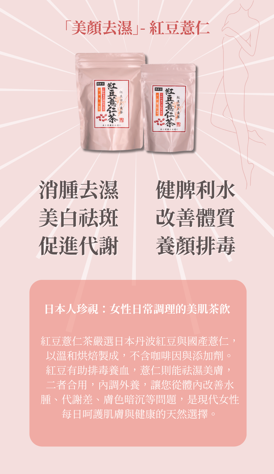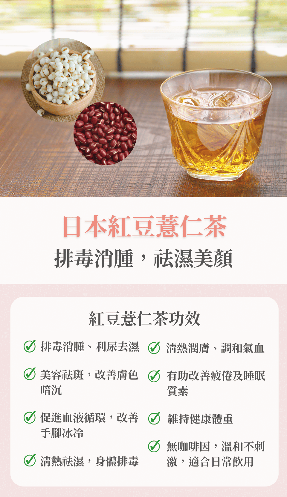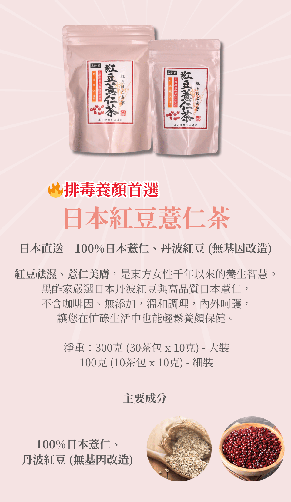 主要成分:日本薏仁, 日本紅豆 (採用非基因改造丹波紅豆)